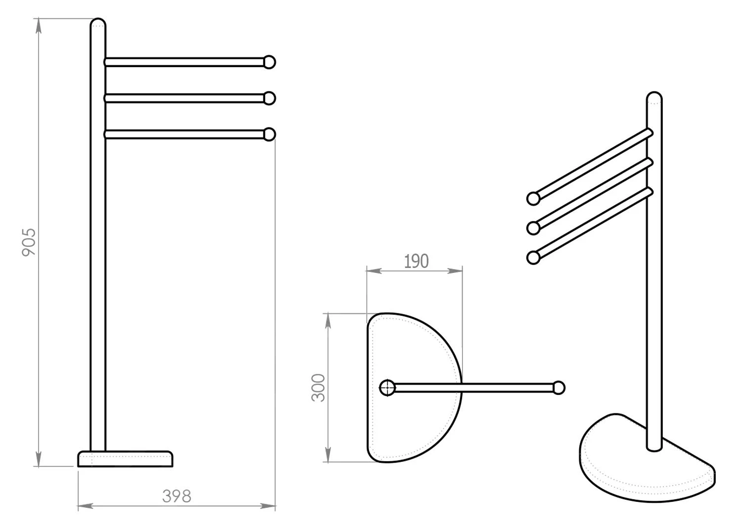 HIBISCUS standaard met handdoekhouder, 3-lids