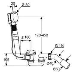 Polysan Afvoergarnituren – Click-Clack Bad Afvoer- En Overloopset, Lengte 900 Mm, Wit 71679W