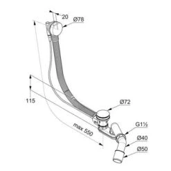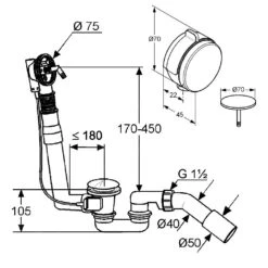 Polysan Toebehoren – Badafvoer En Vul Overloopcombinatie Met Bowden, Lengte 775 Mm, Chroom 71685