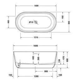 Duravit Soleil By Starck – Vrijstaand Bad 1600×800 Mm, DuraSolid, ClickClack, Wit 700516000000000
