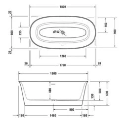 Duravit Xviu – Vrijstaand Bad, 1600×800 Mm, Met Metalen Onderstel, Wit/mat Zwart 700444000B20000