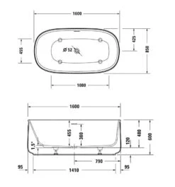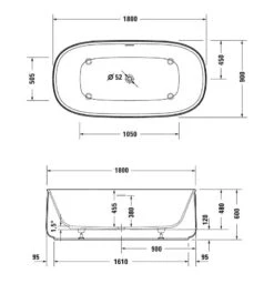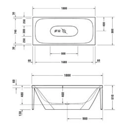 Duravit Xviu – Vrijstaand Bad, 1800×800 Mm, Met Metalen Onderstel, Wit/mat Zwart 700443000B20000