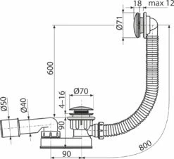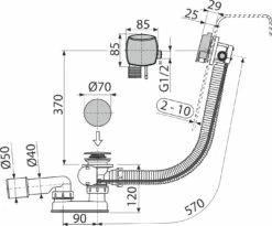 Kielle Afvoergarnituren – Badafvoer En Vul Overloopcombinatie, Lengte 570 Mm, Chroom 11601030