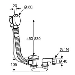 Kludi Rotexa – Badafvoer En Overloop Garnituur, Met Bowdenkanbel 850 Mm, Chroom 2140905-00