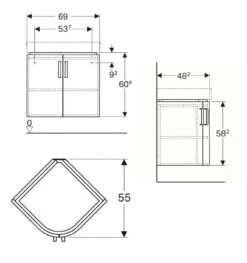 Geberit Selnova Compact – Wastafelkast, 597x397x605 Mm, 2 Deuren, Lichtgrijs 501.658.42.1
