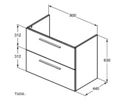 Ideal Standard I.Life A – Wastafelonderkast, 800x440x630 Mm, 2 Laden, Mat Kwartsgrijs T5256NG
