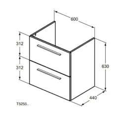 Ideal Standard I.Life A – Wastafelonderkast, 600x440x630 Mm, 2 Laden, Mat Kwartsgrijs T5255NG
