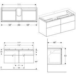 Geberit Xeno 2 – Wastafel Onderkast Met LED Verlichting En 4 Laden, 1200 Mm, Grijs 500.518.43.1