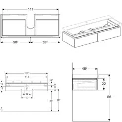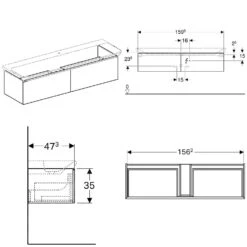 Geberit Xeno 2 – Wastafelonderkast Met LED Verlichting En 2 Laden, 1200 Mm, Grijs 500.517.43.1