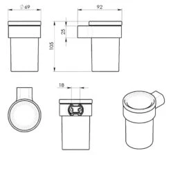 Sapho Gedy Pirenei – Tandenborstelhouder Met Houder, Satijn Glas/mat Zwart PI1014