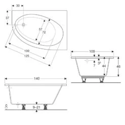 Badpoten en afvoer- en overloopgarnituur met een lengte van 560 mm niet meegeleverd, moeten apart worden besteld.