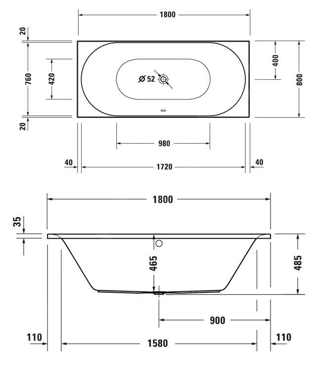 Afvoerset en badsteun niet inbegrepen, moeten afzonderlijk worden aangeschaft.