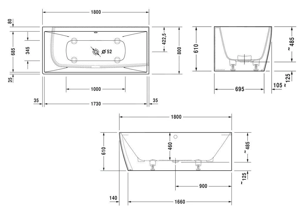- afmetingen 1800 x 800 x 610 mm