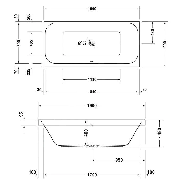 Afvoerset en badsteun niet inbegrepen, moeten afzonderlijk worden aangeschaft.