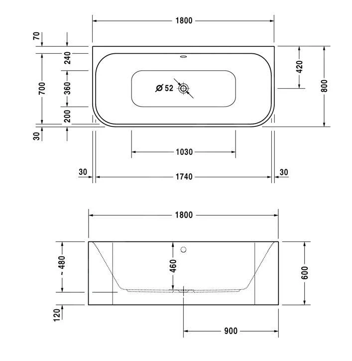 Acrylaat bad back-to-wall