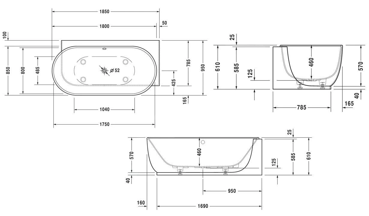 Asymmetrische badkuip in de rechterhoek