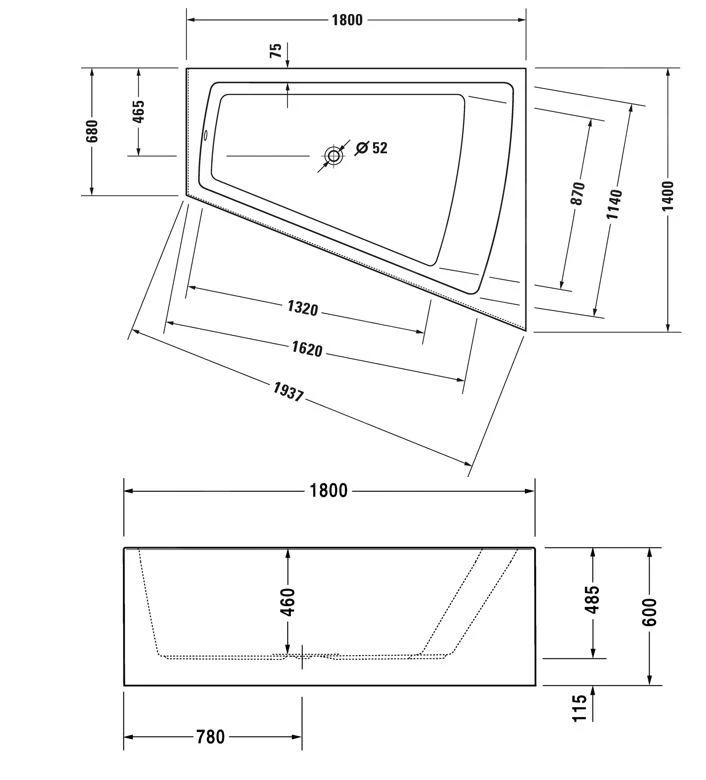 Atypische badkuip in de rechterhoek