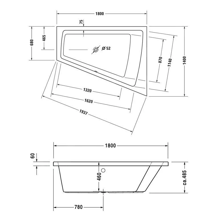 Afvoerset en badsteun niet inbegrepen, moeten afzonderlijk worden aangeschaft.