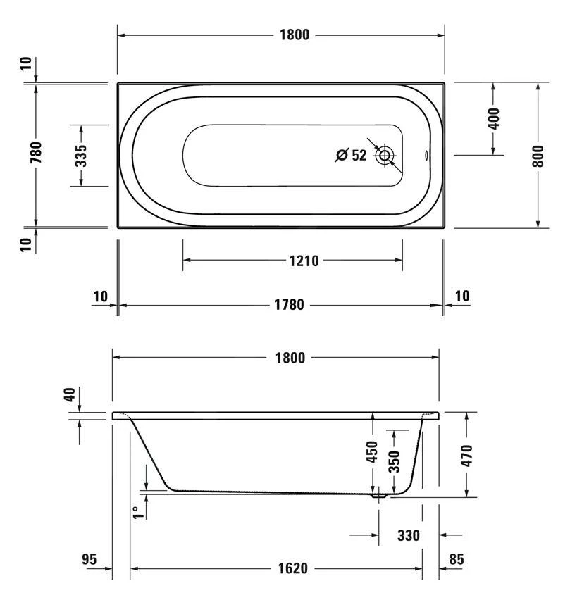 Afvoerset en badsteun niet inbegrepen.