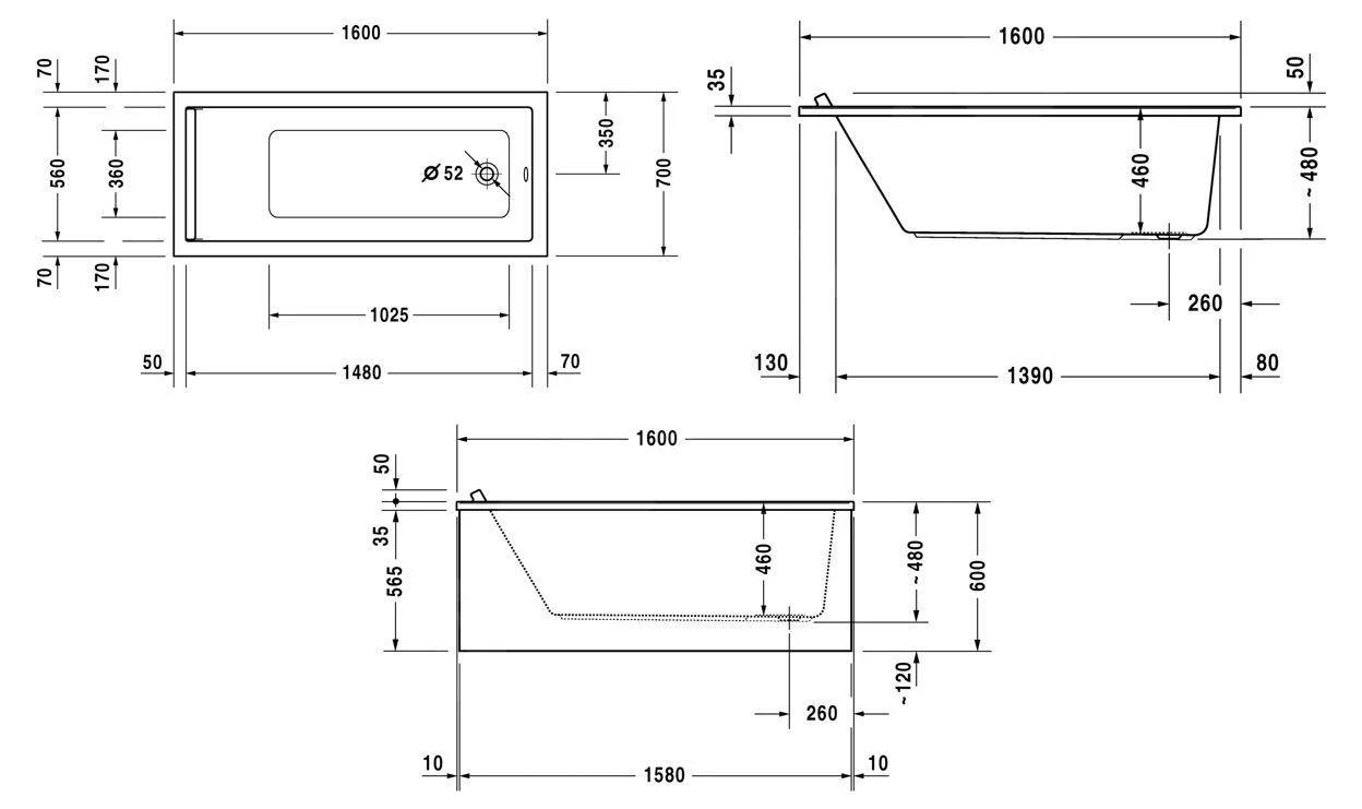 Afvoerset en badsteun niet inbegrepen, moeten afzonderlijk worden aangeschaft.
