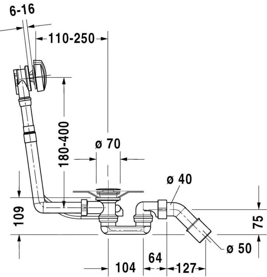 Afvoer- en overloopgarnituur voor D-Code baden