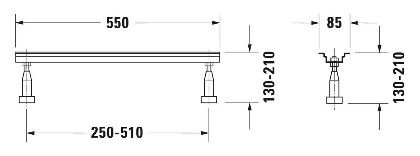 - hoogteverstelbaar: 130-210 mm / 140-220 mm (bij gebruik van een dempingsset voor douchebakken)