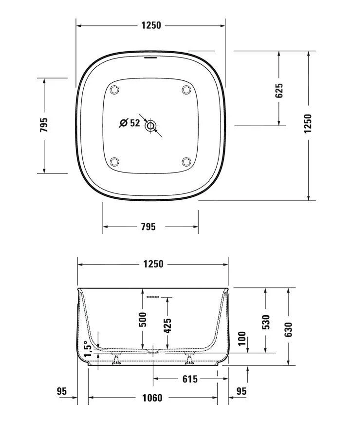 - afmetingen 1250 x 1250 x 630 mm