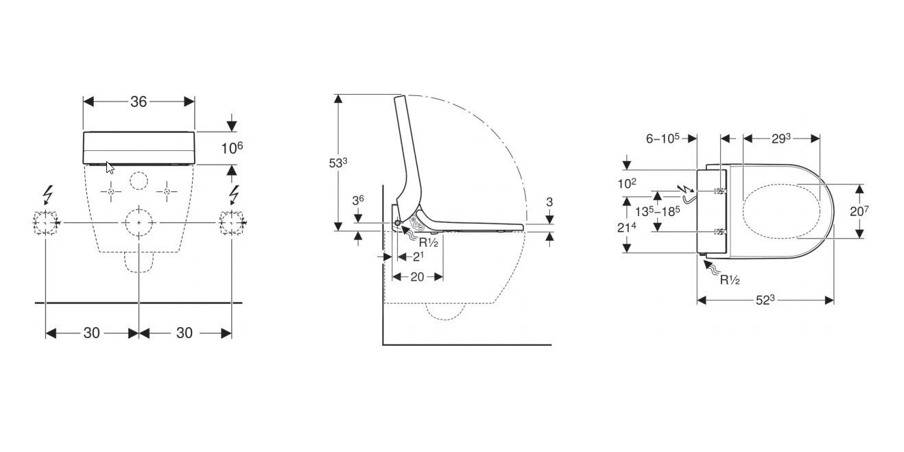 - watertemperatuur kan worden ingesteld via de Geberit AquaClean applicatie