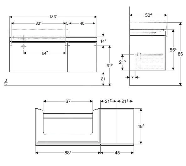 - afmetingen kastje: 133,4 x 55,4 x 50,4 cm (bxhxd)