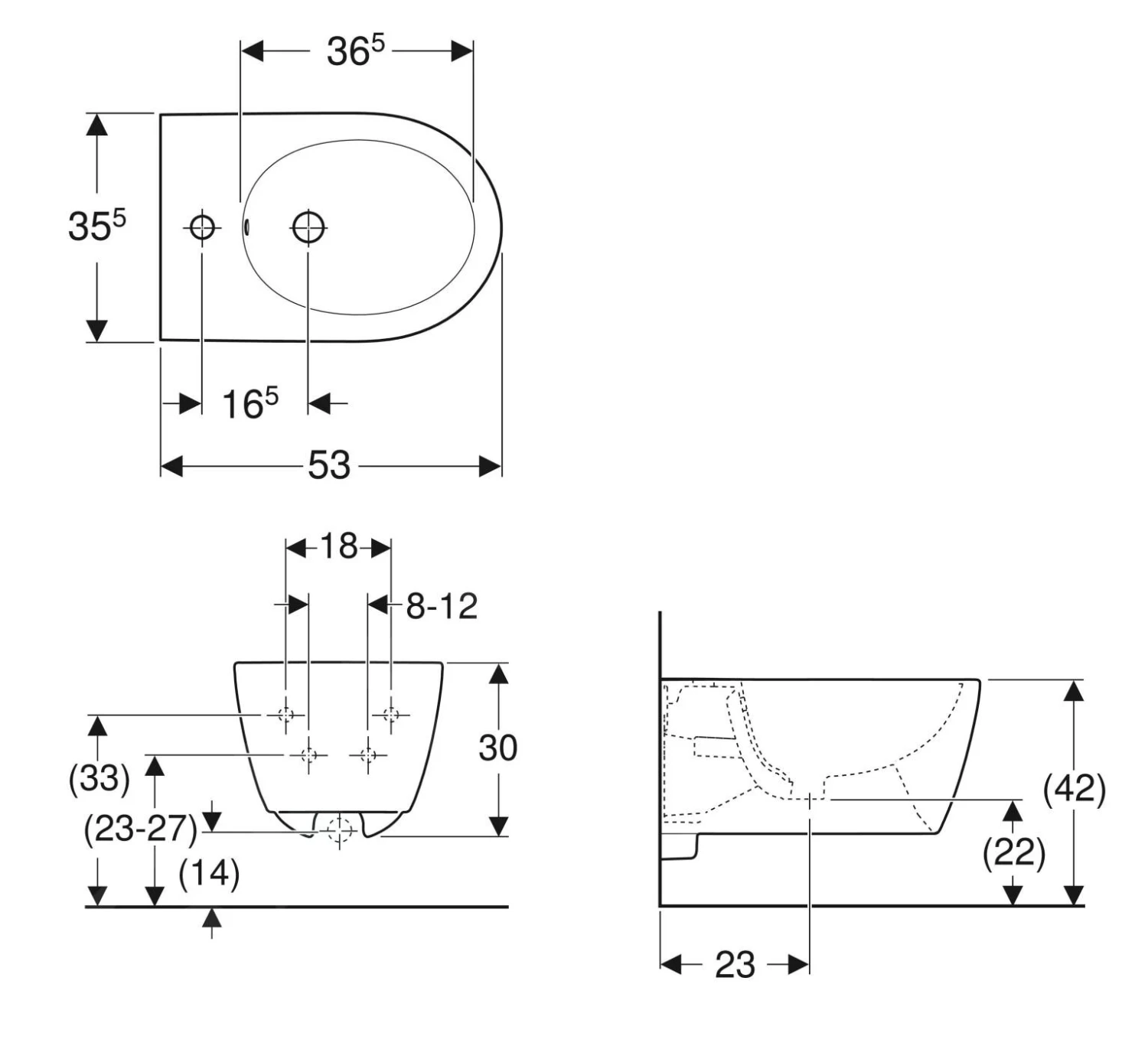 - eenvoudige bevestiging met Geberit wandbevestiging type EFF3 voor bidet