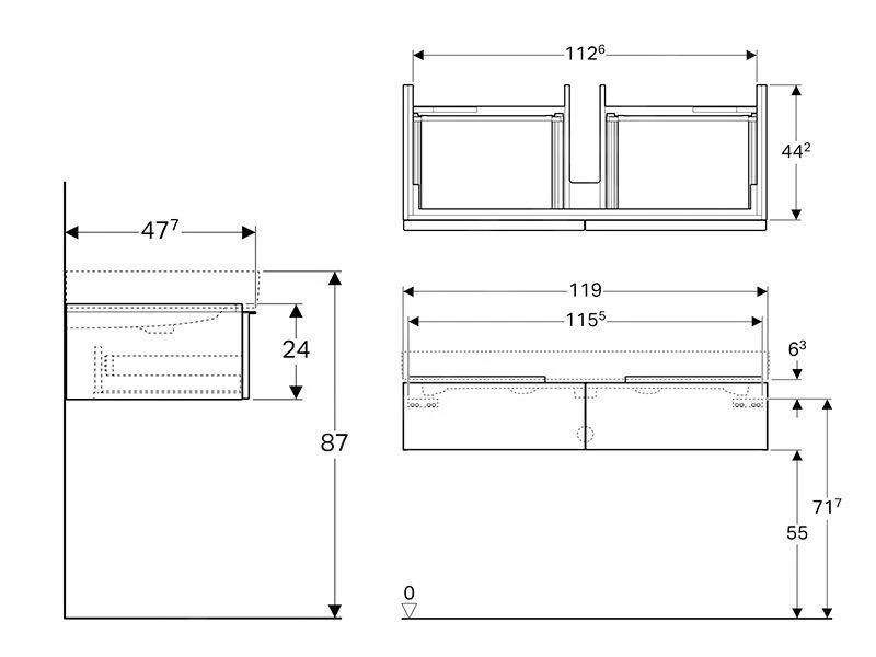 - afmetingen kastje: 119 x 24 x 47,7 cm (bxhxd)