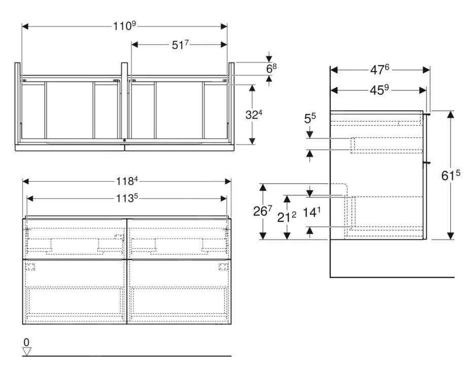 Geberit iCon onderkast voor dubbele wastafel