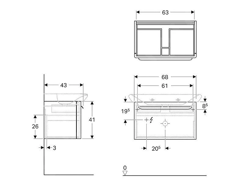 - voor wastafel met een breedte van 800 mm
