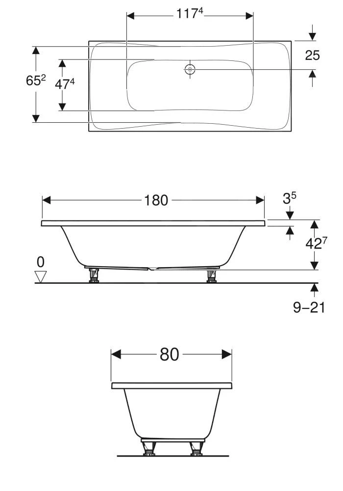 - voor montage met badpoten of muurankers Â