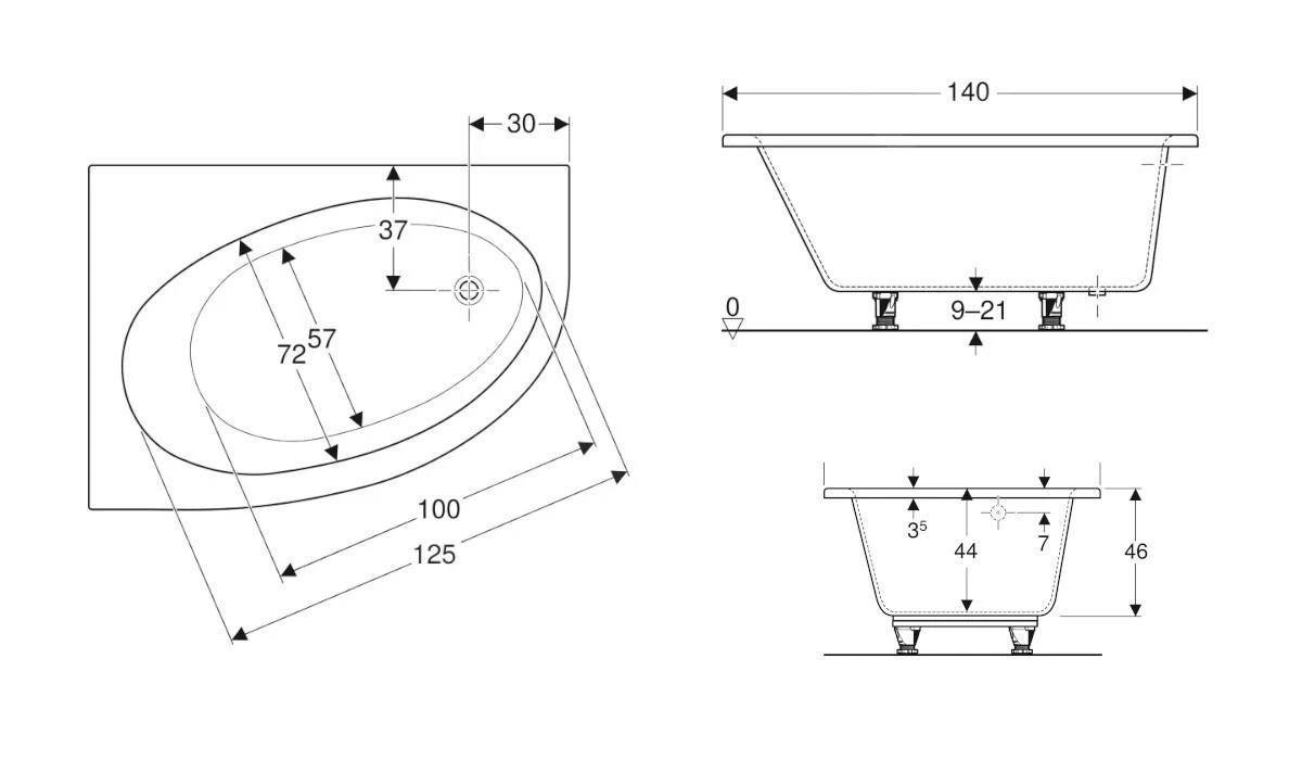 Afvoerset niet inbegrepen, moet apart worden aangeschaft. Een frontpaneel voor het bad kan worden bijgekocht.