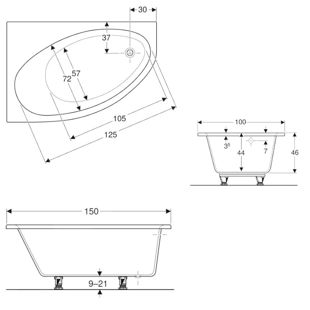 Afvoerset niet inbegrepen, moet apart worden aangeschaft. Een frontpaneel voor het bad kan worden bijgekocht.