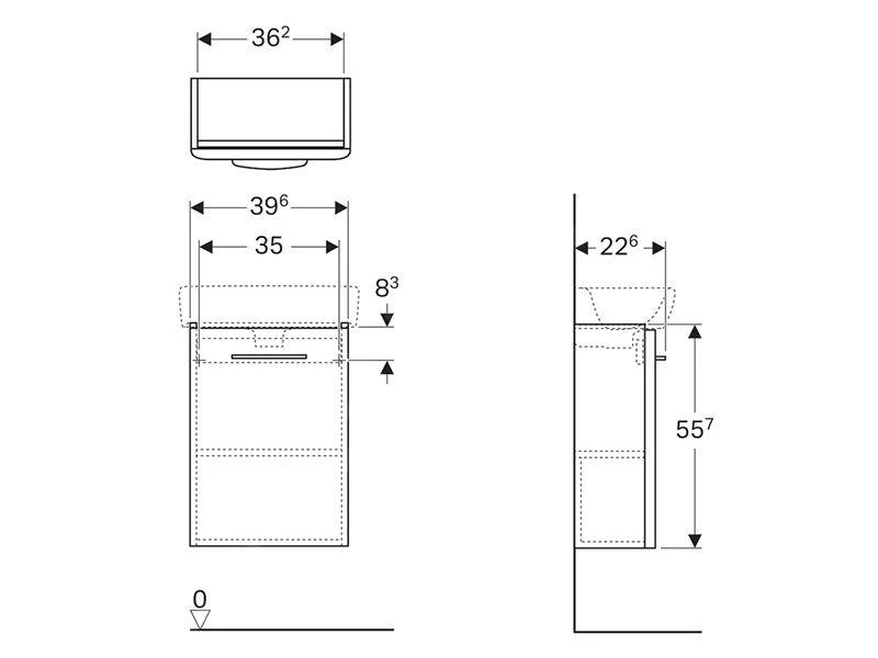 - installatie door ophanging aan de wand of op meubelpoten (niet meegeleverd)