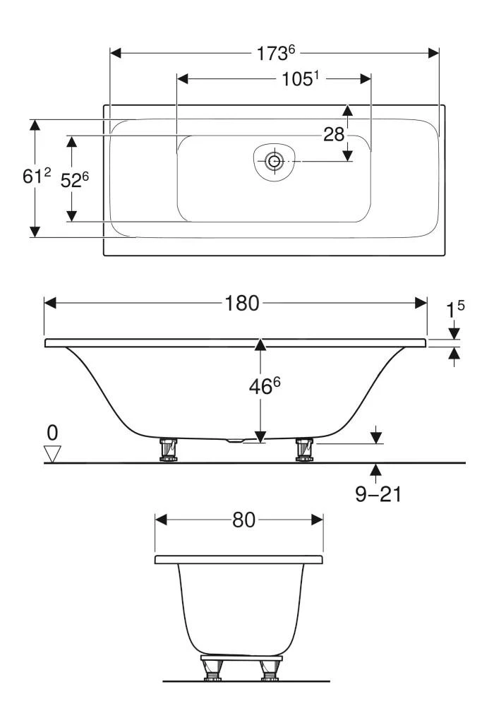- het bad wordt met poten geleverd