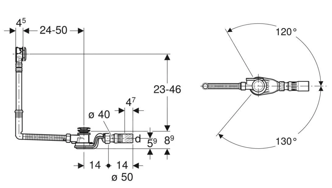 - hoogte van het waterslot 50 mm