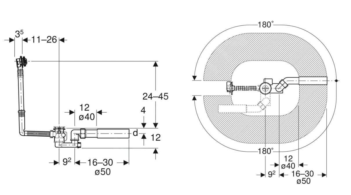 - dubbelzijdige afdichting voor afvoer en overloop
