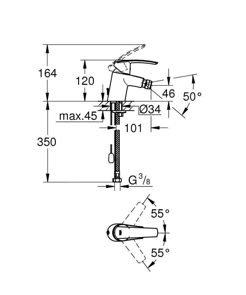 Eengreeps bidetkraan met ketting