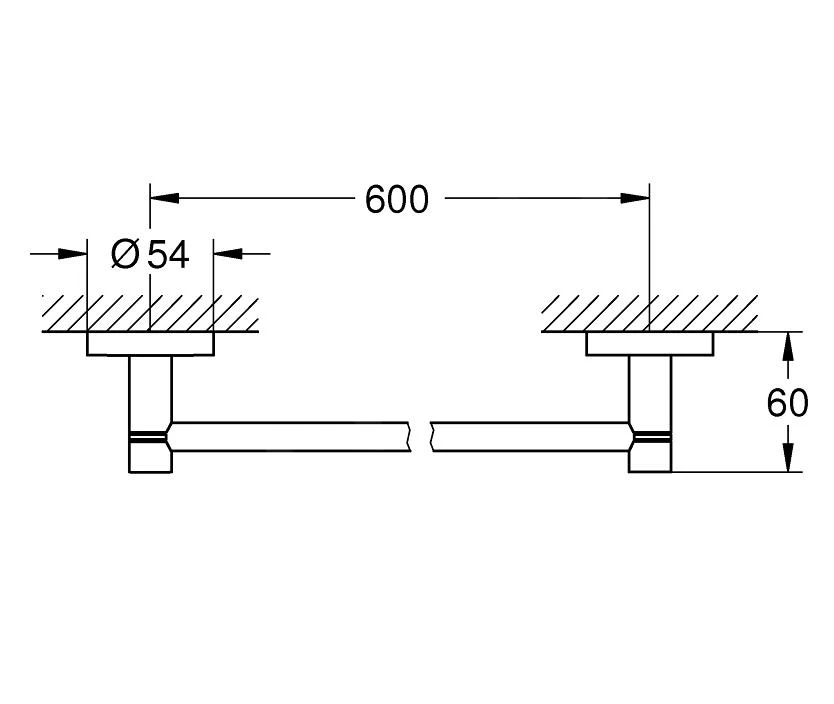 - functionele lengte: 600 mm, totale lengte: 654 mm