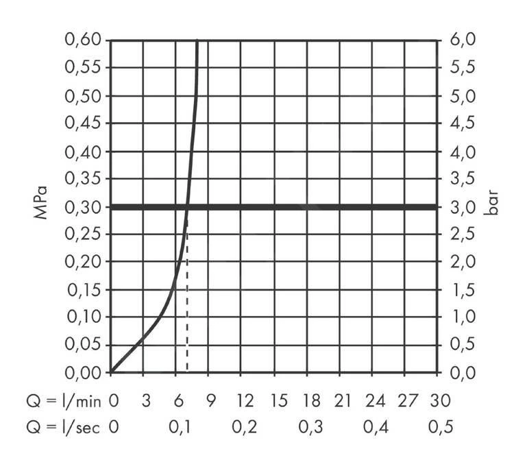 - max. doorstroming: 7,5 l/min (druk 3 bar)