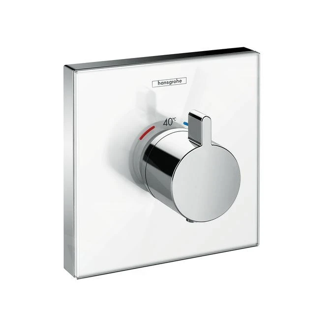 De Hansgrohe ShowerSelect Highflow thermostaatkraan met glazen oppervlak voor inbouwinstallatie maakt grote indruk door zijn moderne design in de combinatie wit/chroom en door de geweldige functionaliteit en eenvoudige bediening. De platte pingreep is eenvoudig te bedienen, ook met ingezeepte handen.