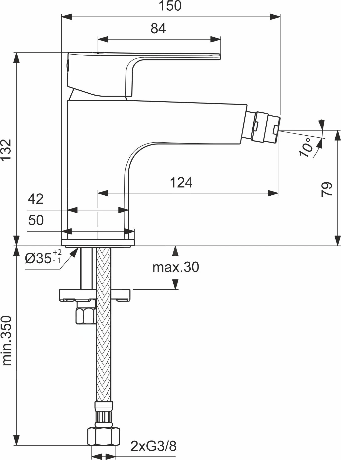 Eengreeps bidetkraan zonder afvoergarnituur