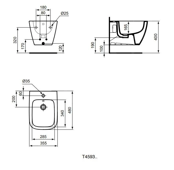 Compact hangend bidet