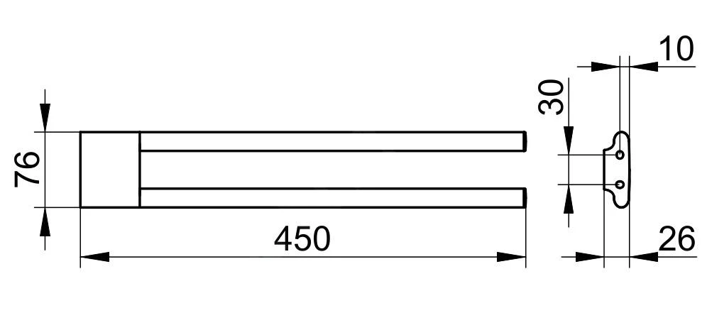 - totale afmetingen:Â 76 x 450 x 26 mm