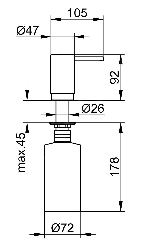 Inbouw zeep-, vloeibare zeep-, desinfectiegel- of afwasmiddeldispenser