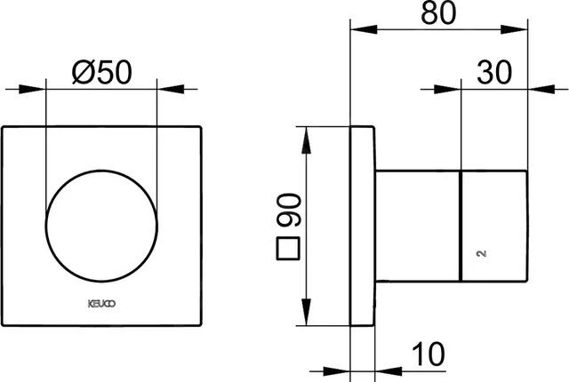 - vierkante afdekrozet, afmeting 90 x 90 mm