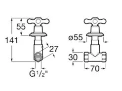 3-weg stop- en instelkraan inbouw, zonder inbouwdeel